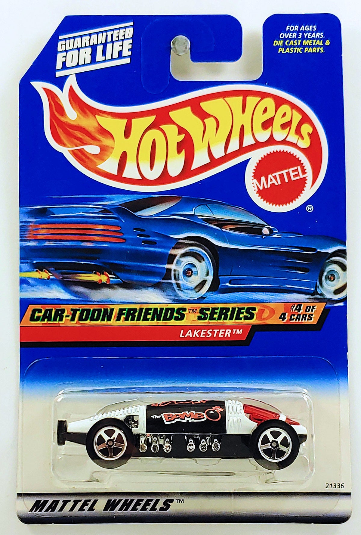 Hot Wheels 1999 - Collector # 988 - Car-Toon Friends Series 4/4 - Lakester - White / Borris - USA Blue Car Card - MPN 21336