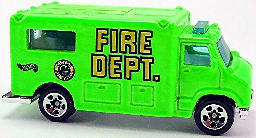 Hot Wheels 1996 - Collector # 424 - Fire Squad Series 1/4 - Ambulance - Bright Green / Fire Dept. - 5 Spokes - USA