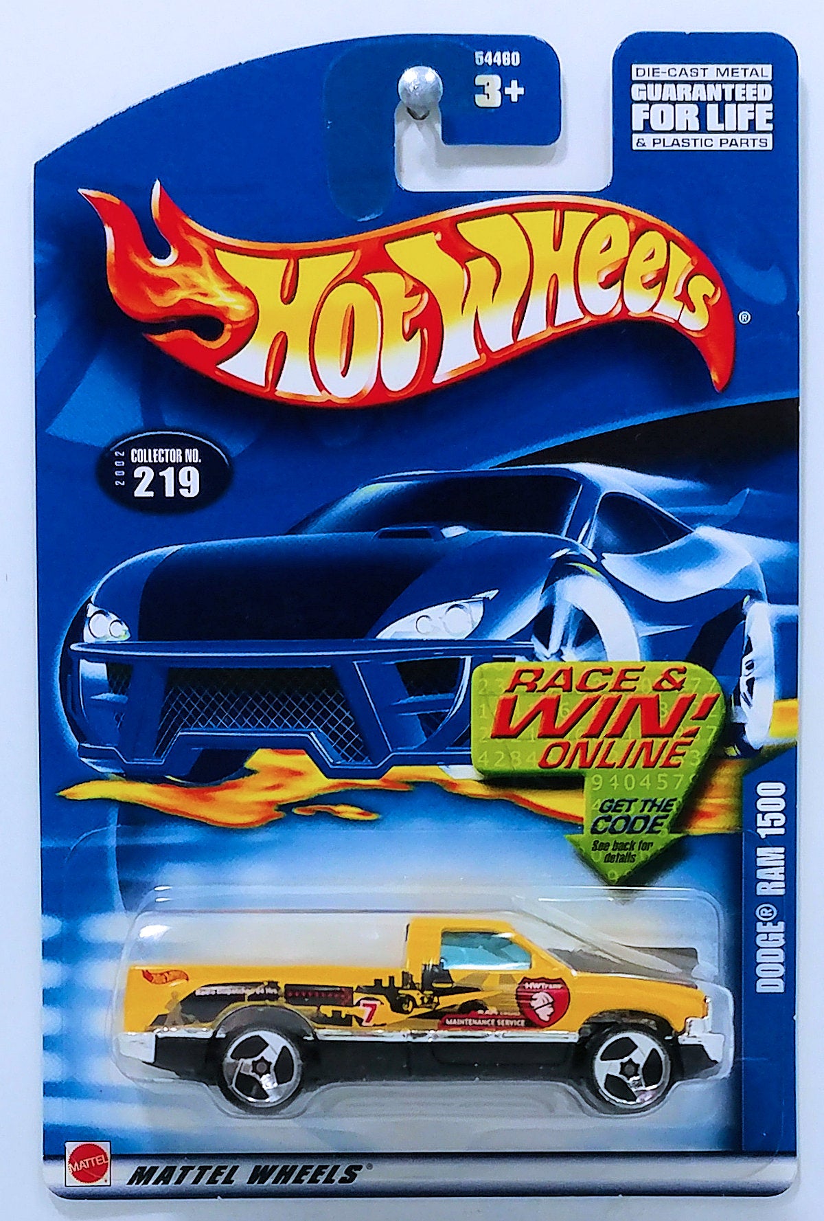 Hot Wheels 2002 - Collector # 219/240 - Dodge Ram 1500 - Yellow - USA 'Race & Win' Card - MPN 54460