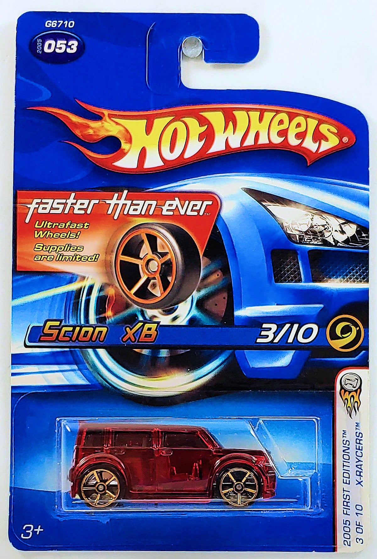 Hot Wheels 2005 - Collector # 053/183 - First Editions: X-Raycers 3/10 - Scion xB - Transparent Red - Faster Than Ever - USA '06 Card - MPN G6710