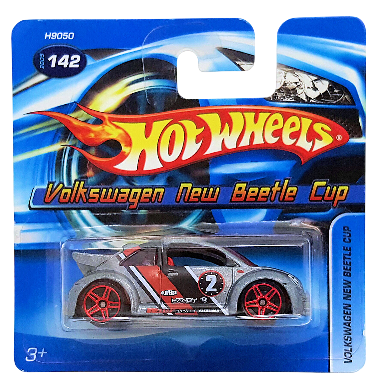Hot Wheels 2005 - Collector # 142/187 - Volkswagen New Beetle Cup - Gray Metallic - Red PR5 Wheels - International Short '06 Card - MPN H9050