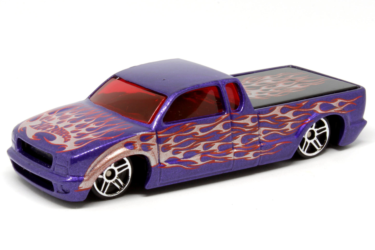 Hot Wheels Wiki says - Steel Flame is a customized 1999 GMC Sonoma pickup truck owned by Steve Platt, a former Mattel model maker. The truck features a custom livery with House of Kolor Fabulous Blue and Orion Silver mixed together, a flame paintjob with hidden ghost skulls within the paintjob, lowered ride height, Colorado Customs Paradox billet wheels, low profile tires, custom sound system and numerous other cosmetic modifications. The truck has been featured in various publications, such as in Street Trucks magazine and Mayhem - Street Trucks produced by Teckademics. The truck, as of 2024, is owned by Don Garling.