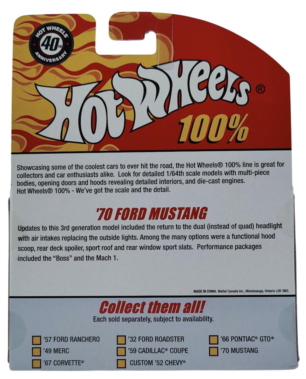 Hot Wheels 2008 - 100% Collectible / 40th Anniversary - '70 Ford Mustang - Red - Rubber Tires - Opening Hood - Extreme Detail - Acrylic Display Box - MPN M3689