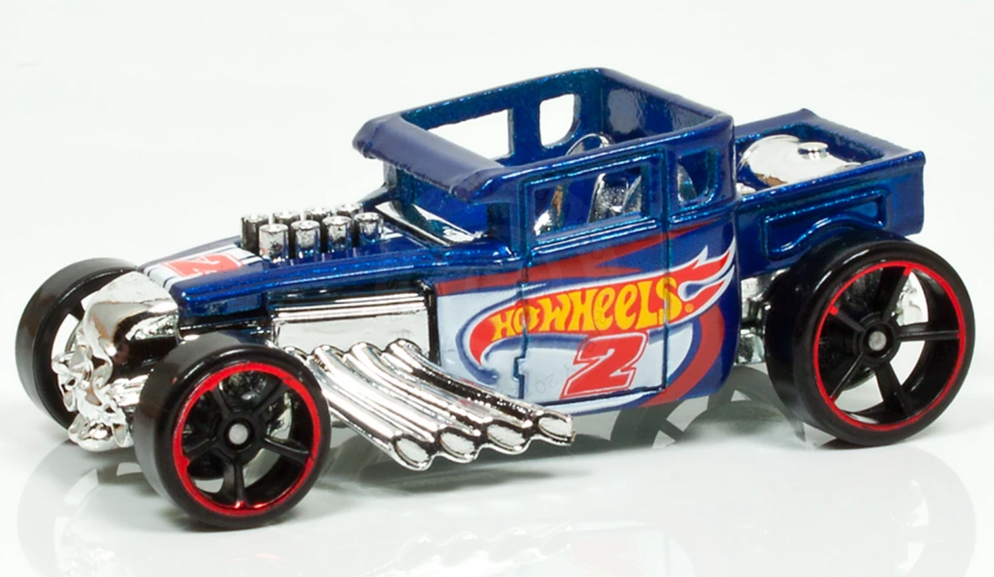 Wiki Says: Bone Shaker is a hot rod design created by Larry Wood. Featuring a distinctive skull on its front, the Bone Shaker is one of Larry Wood's favorite Hot Wheels models to design as well as one of Hot Wheels' most famous and iconic models. Featuring both closed and open roof versions and even a version with the Joker's face instead of the skull, the Bone Shaker has spawned numerous additional derivatives, with alternative takes on the iconic design.