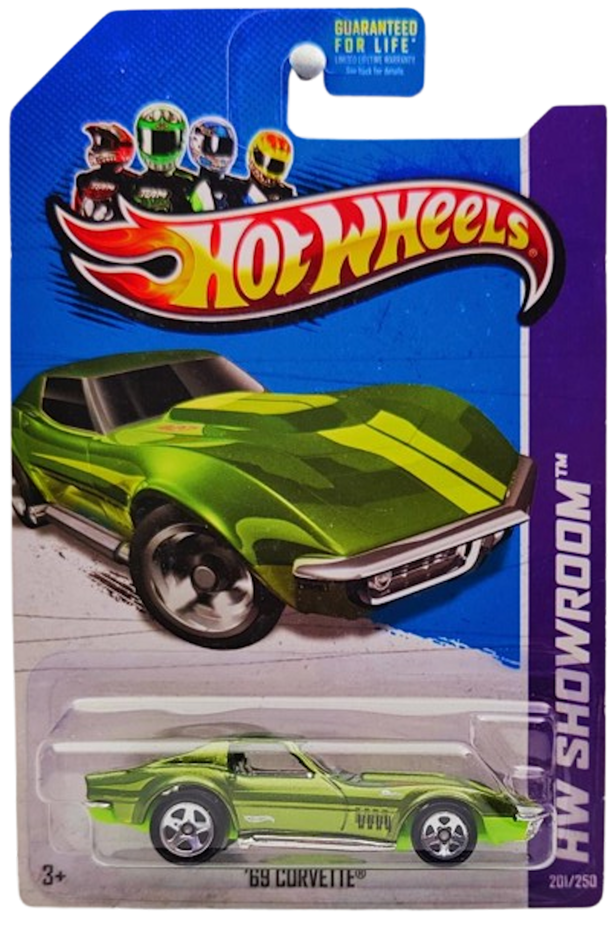 Hot Wheels 2013 - Collector # 201/250 - HW Showroom / Corvette 60th - '69 Corvette - Metalflake Green - 5 Spoke Wheels - KMart Exclusive - USA Card - MPN X2037