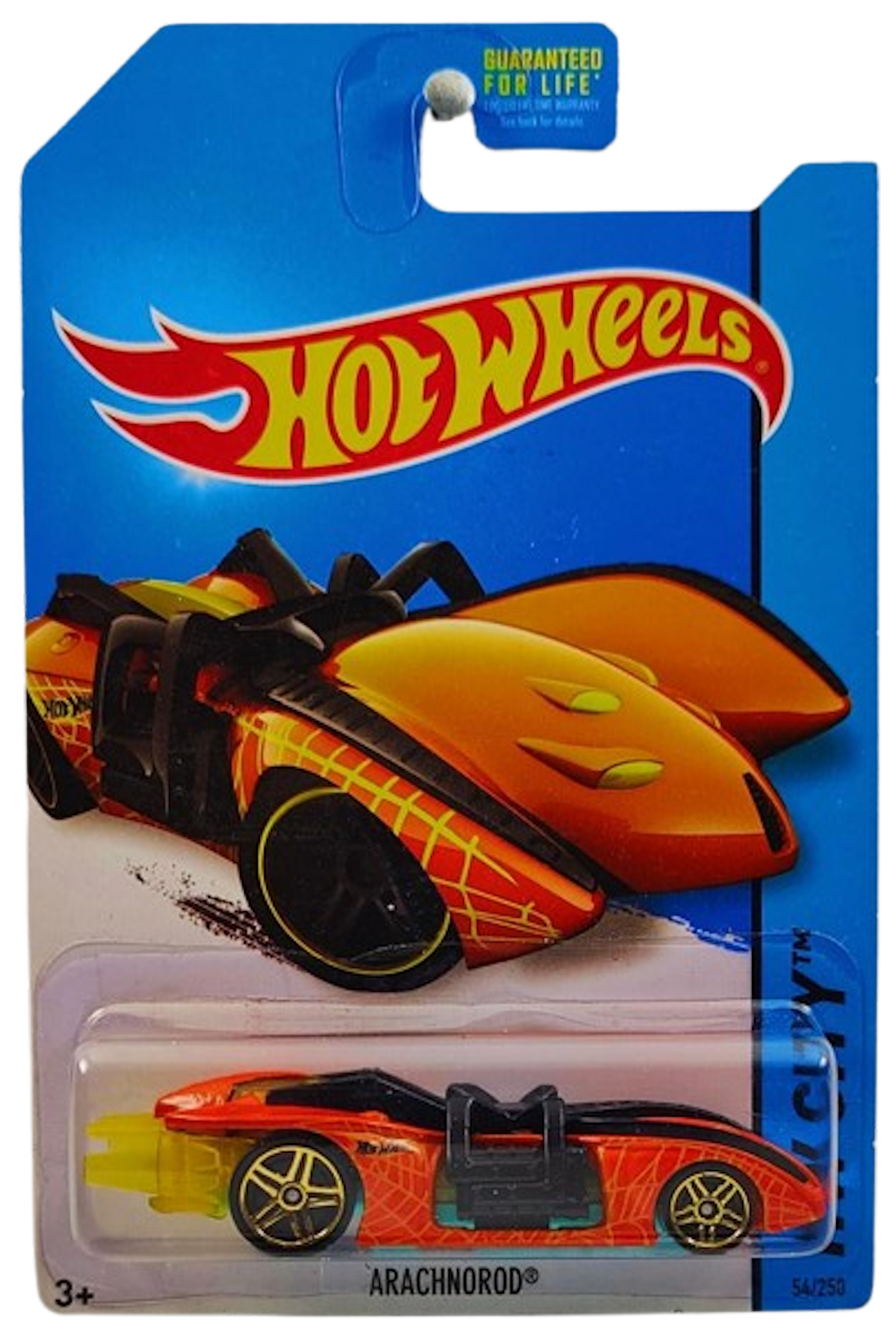 Hot Wheels 2014 - Collector # 054/250 - HW City / Street Beasts - Arachnorod - Orange with Yellow Web - Gold PR5 Wheels - Black Spider - USA Card