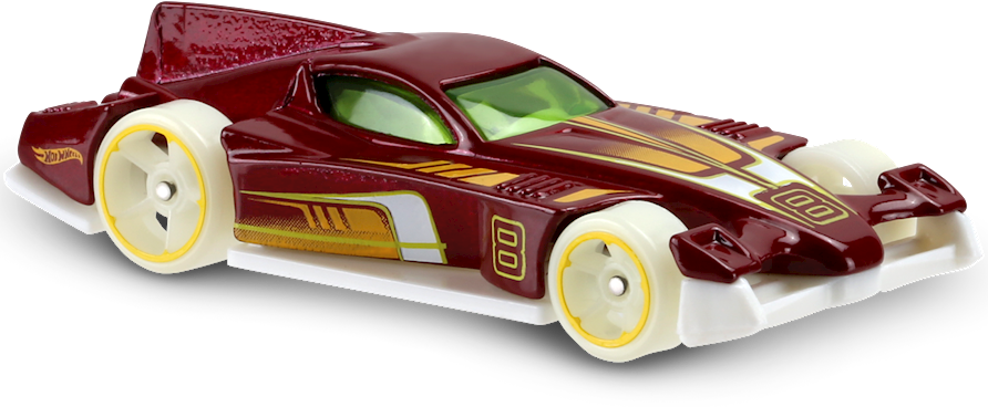 Hot Wheels 2016 - Collector # 048/250 - HW Glow Wheels 3/10 - Formul8r - Dark Red Metalflake / White - USA ‘Showdown’ Card - MPN DHW66