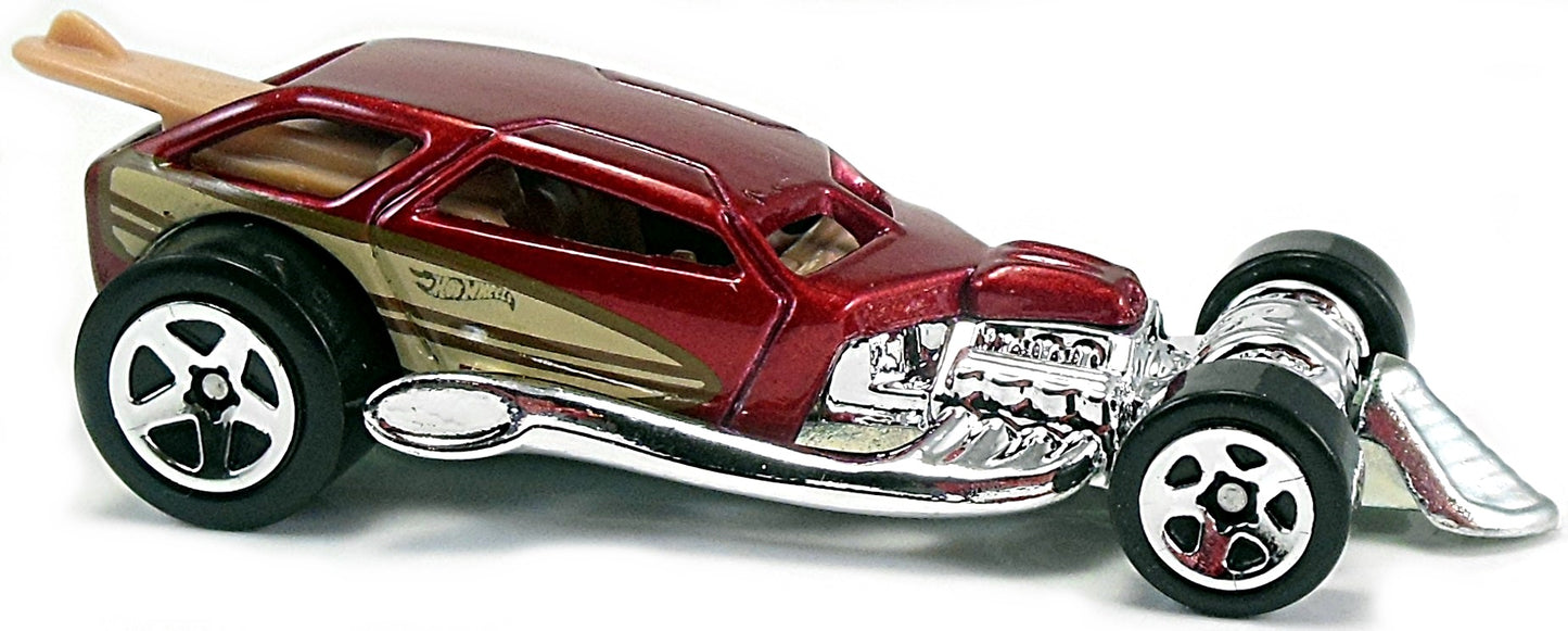 Hot Wheels Wiki says: Surf Crate is a custom Woodie wagon. The first few releases had a removable surf board and the word "Surf Crate" inscribed into the rear deck. The tooling was slightly changed in 2011; the rear deck was changed so the surf board and rear deck are now one piece. The casting was slightly changed again in 2015, with the blower of the engine being moved slightly closer to the body of the car; the side pipes were also modified, being lower than previous versions.
