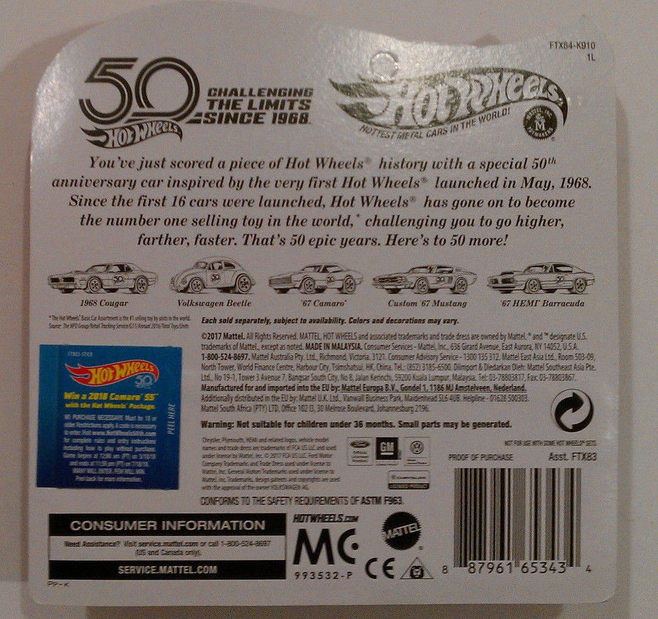 Hot Wheels 2018 - 50th Anniversary Originals Collection # 1/5 - 1968 Cougar - Spectraflame, Gold - RetroRL Wheels - Gold Interior - ZAMAC Metal Base - Retro Blister Card & Button - MPN FTX84
