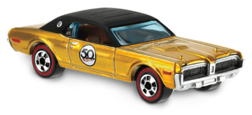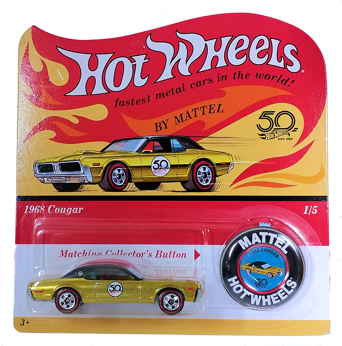 Hot Wheels 2018 - 50th Anniversary Originals Collection # 1/5 - 1968 Cougar - Spectraflame, Gold - RetroRL Wheels - Gold Interior - ZAMAC Metal Base - Retro Blister Card & Button