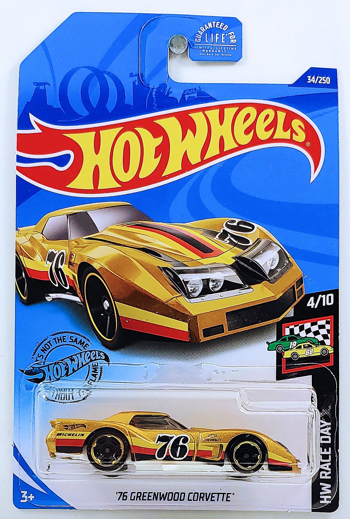 Hot Wheels 2020 - Collector # 034/250 - HW Race Day # 4/10 - '76 Greenwood Corvette - Gold / #76 - USA Card - MPN GHC50