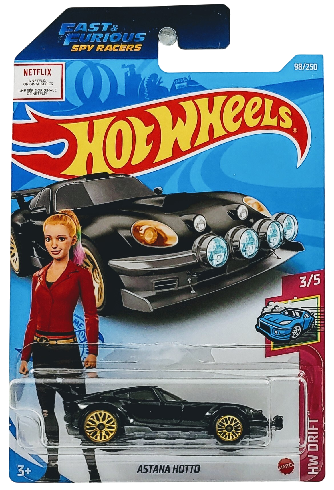 Hot Wheels 2021 - Collector # 098/250 - HW Drift 3/5 - Astana Hotto - Black - International 'Fast & Furious Spy Racers - Netflix' Card - MPN GTB24