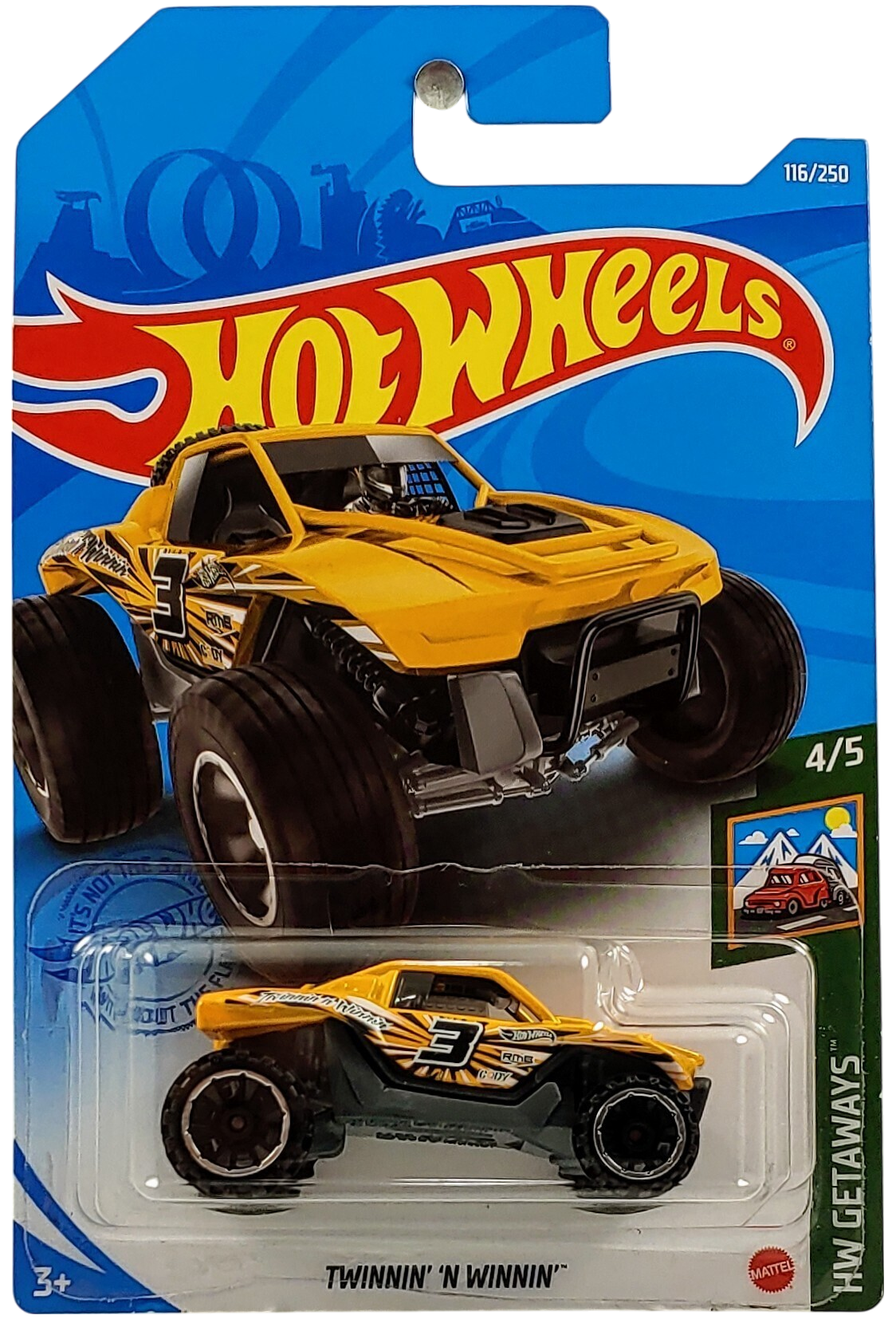 Hot Wheels 2021 - Collector # 116/250 - HW Getaways 4/5 - Twinnin' Winnin' - Yellow / #3 - International Card - MPN GTB78