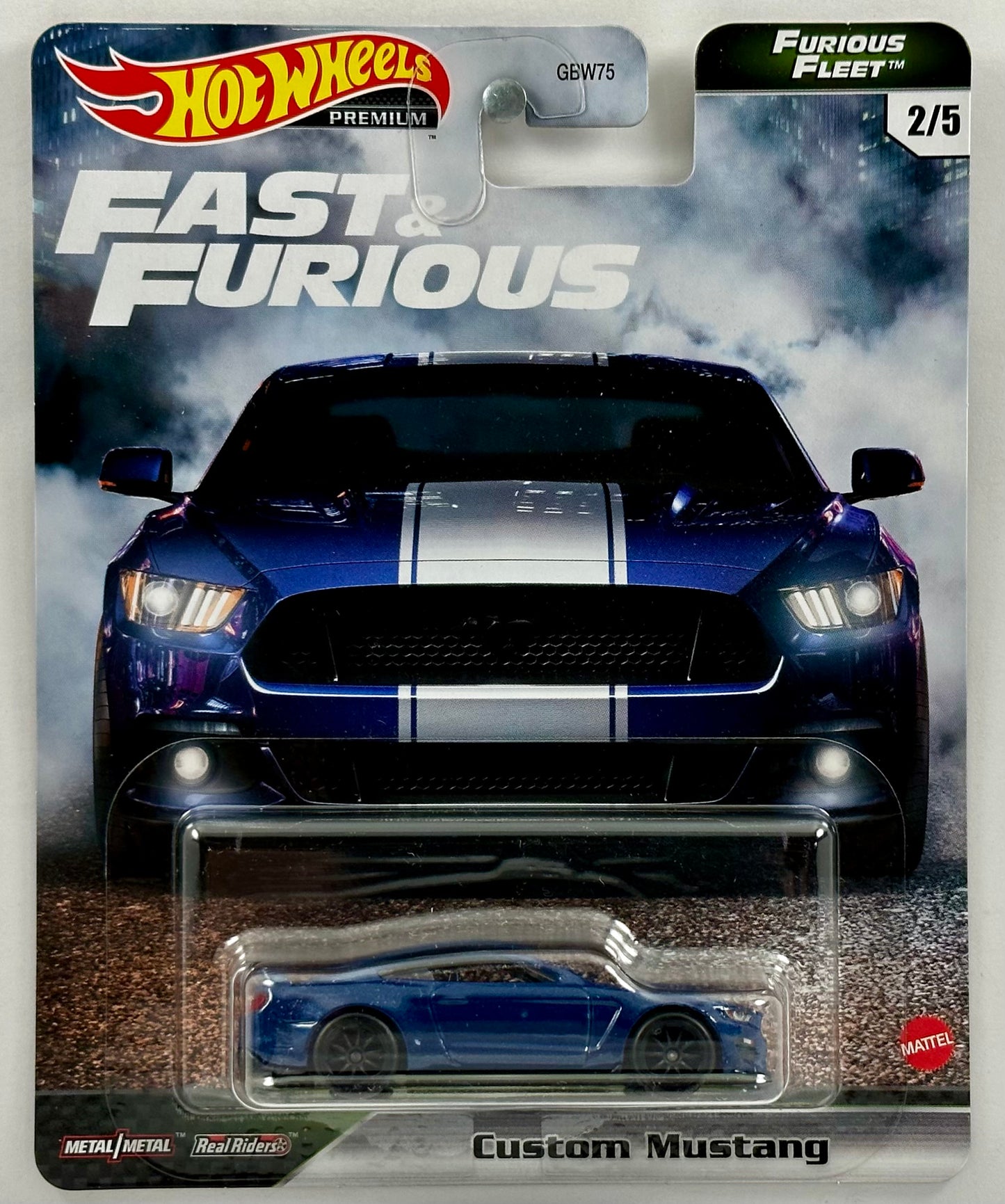 Hot Wheels 2021 - Premium / Fast & Furious / Furious Fleet 2/5 - Custom Mustang - Blue / White Stripe - Metal/Metal & Real Riders - MPN GRK56