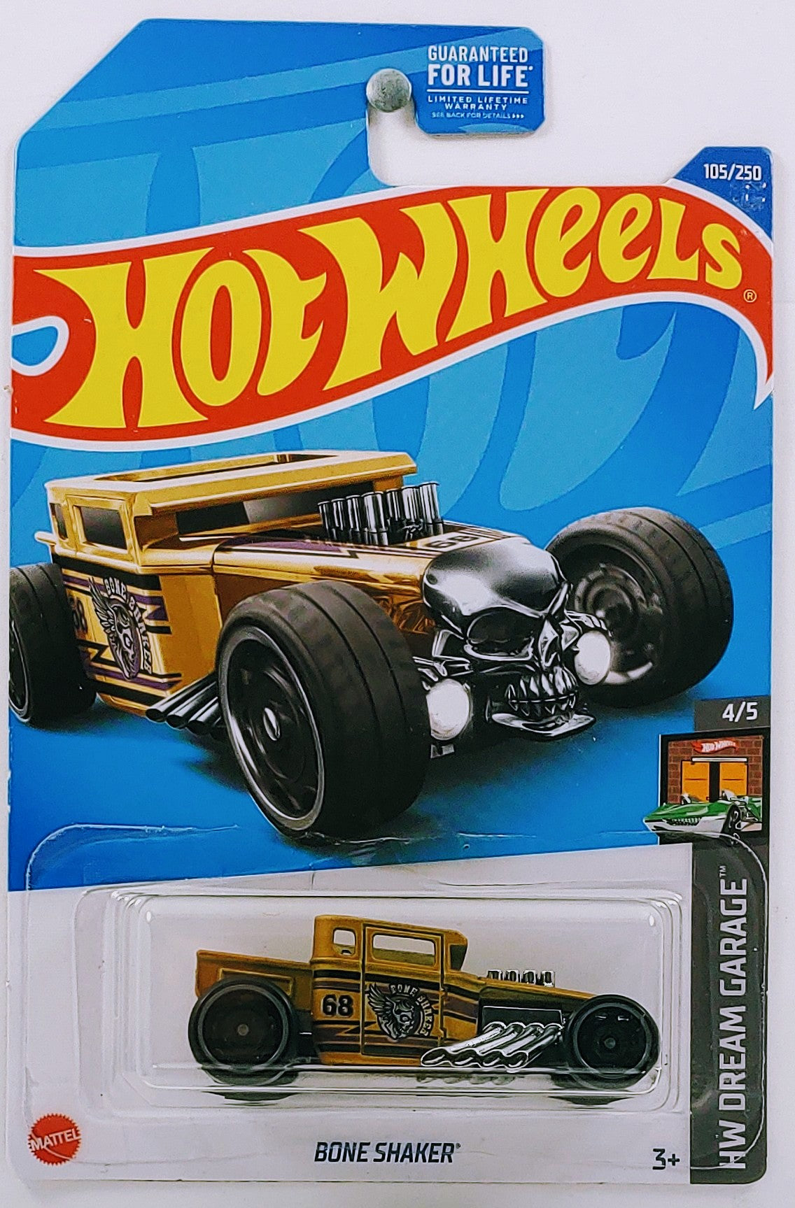 Hot Wheels 2022 - Collector # 105/250 - HW Dream Garage 4/5 - Bone Shaker - Gold - USA Card - MPN HCX12