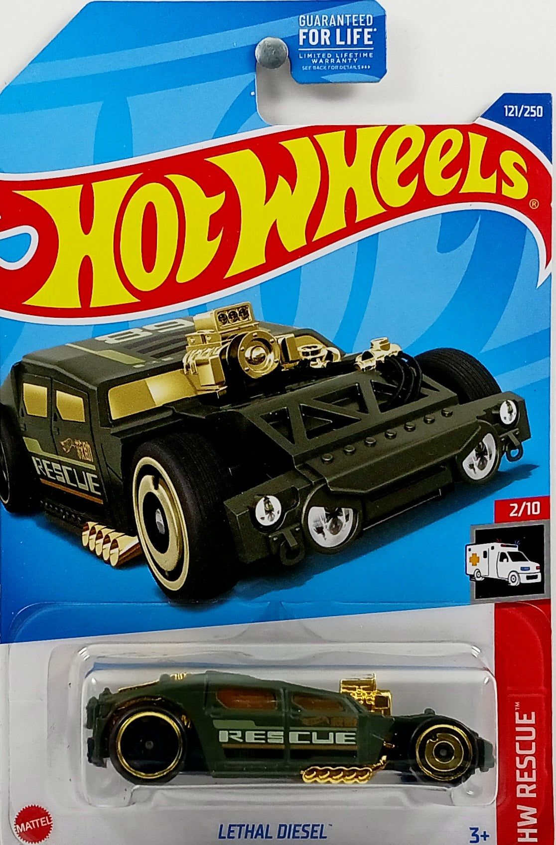Hot Wheels 2022 - Collector # 121/250 - HW Rescue 2/10 - Lethal Diesel - Matte Green / Rescue - USA Card - MPN HCX17
