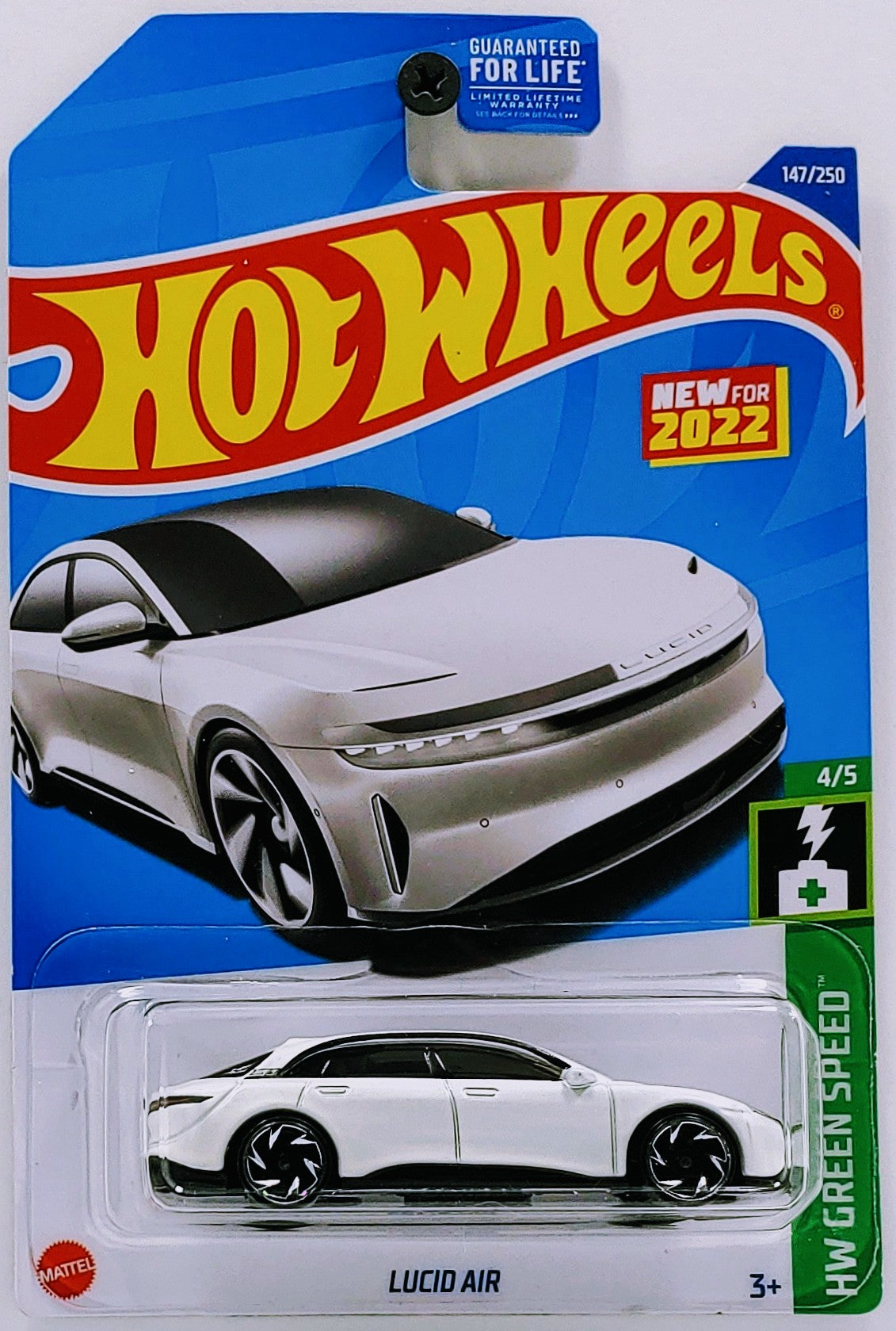 Hot Wheels 2022 - Collector # 147/250 - HW Green Speed 4/5 - New Models - Lucid Air - White - USA Card - MPN HCX40