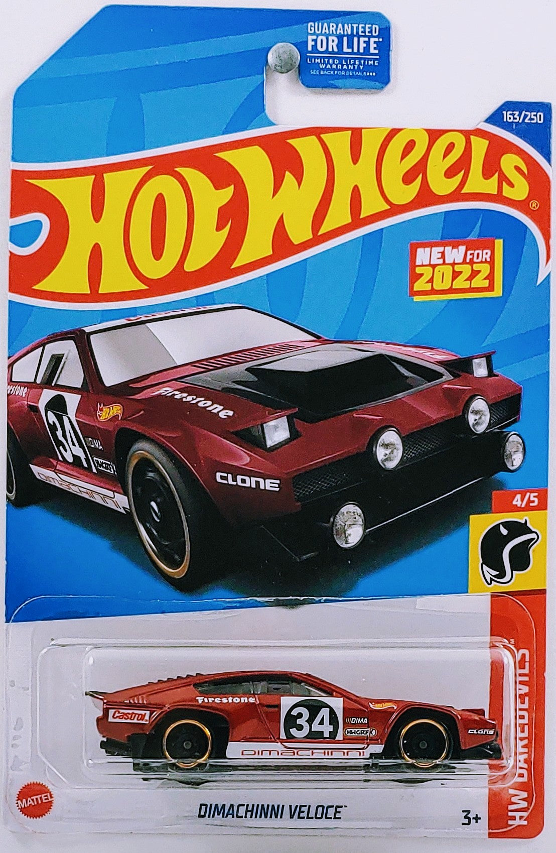 Hot Wheels 2022 - Collector # 163/250 - HW Daredevils 4/5 - New Models - Dimachinni Veloce - Red / #34 - USA