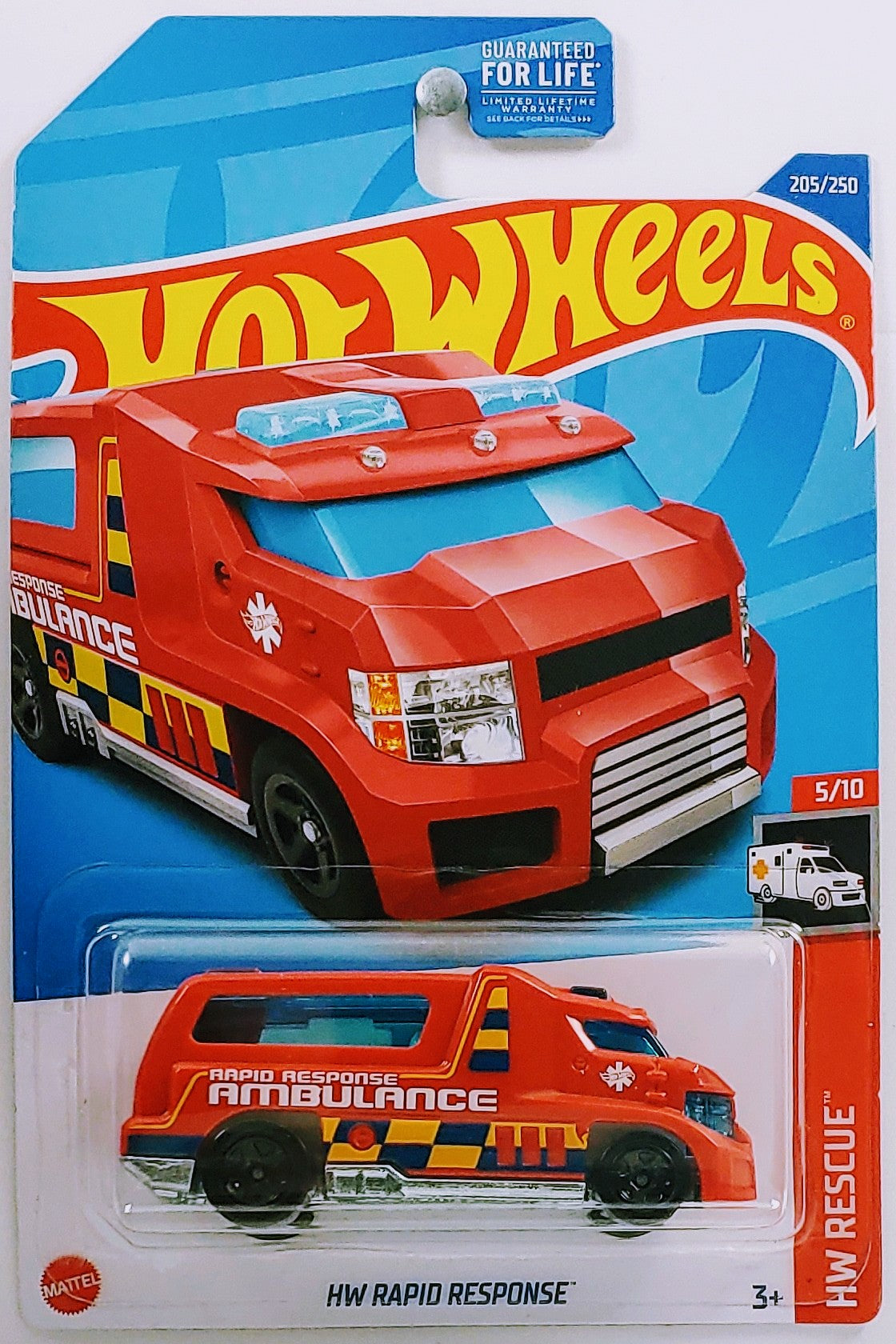Hot Wheels 2022 - Collector # 205/250 - HW Rescue 5/10 - HW Rapid Response - Red / Ambulance - USA Card - MPN HCW35