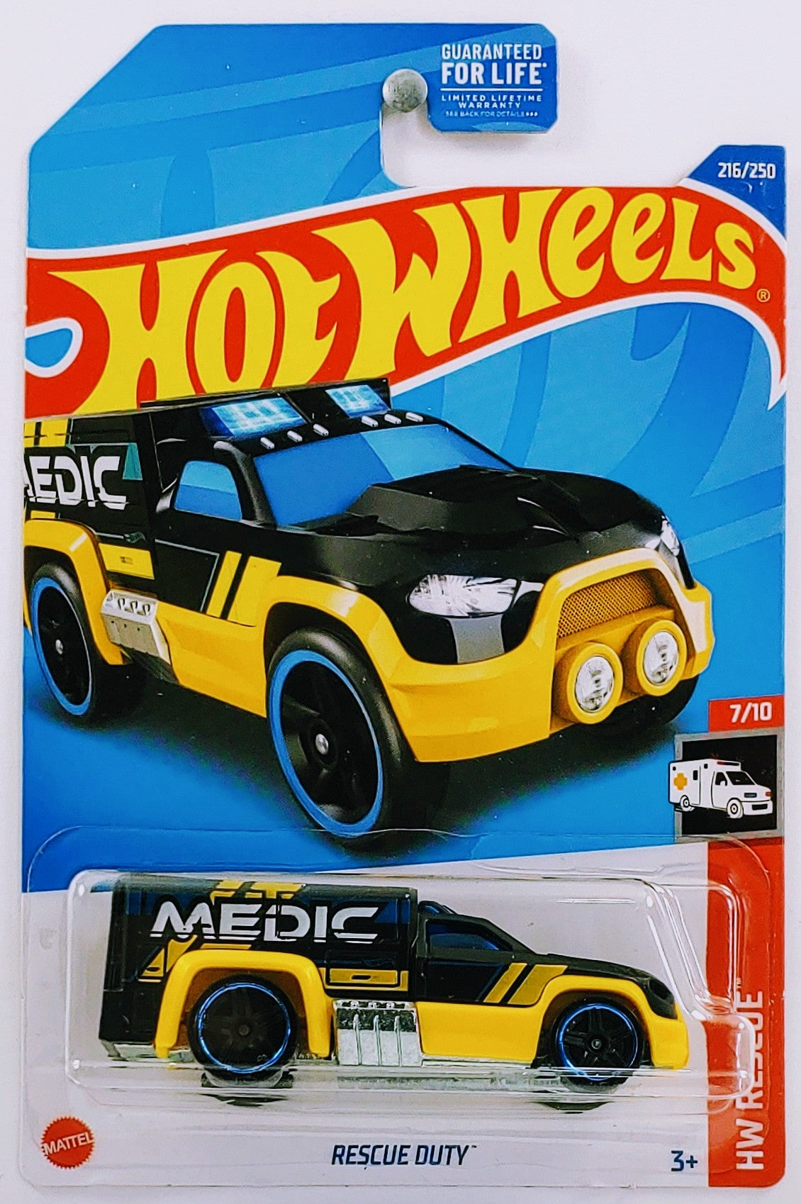 Hot Wheels 2022 - Collector # 216/250 - HW Rescue 7/10 - Rescue Duty - Black & Yellow / MEDIC - USA Card - MPN HCW26
