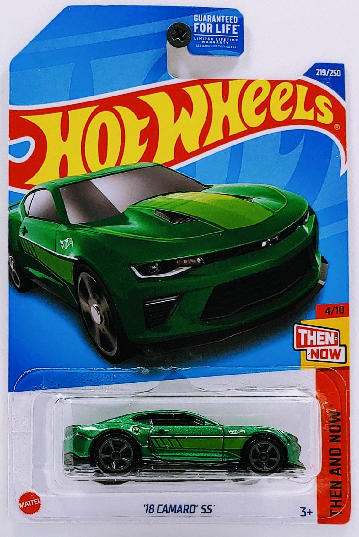 Hot Wheels 2022 - Collector # 219/250 - Then And Now 4/10 - '18 Camaro SS - Green - USA Card - MPN HCV82