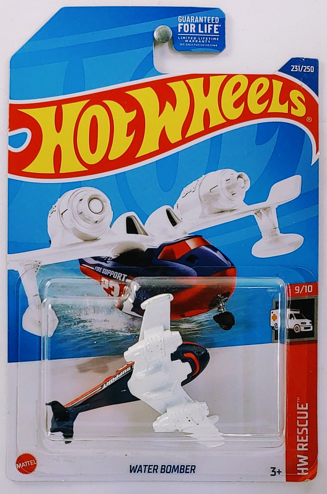 Hot Wheels 2022 - Collector # 231/250 - HW Rescue 9/10 - Water Bomber - Dark Blue, Red & White - USA Card - MPN HCT87