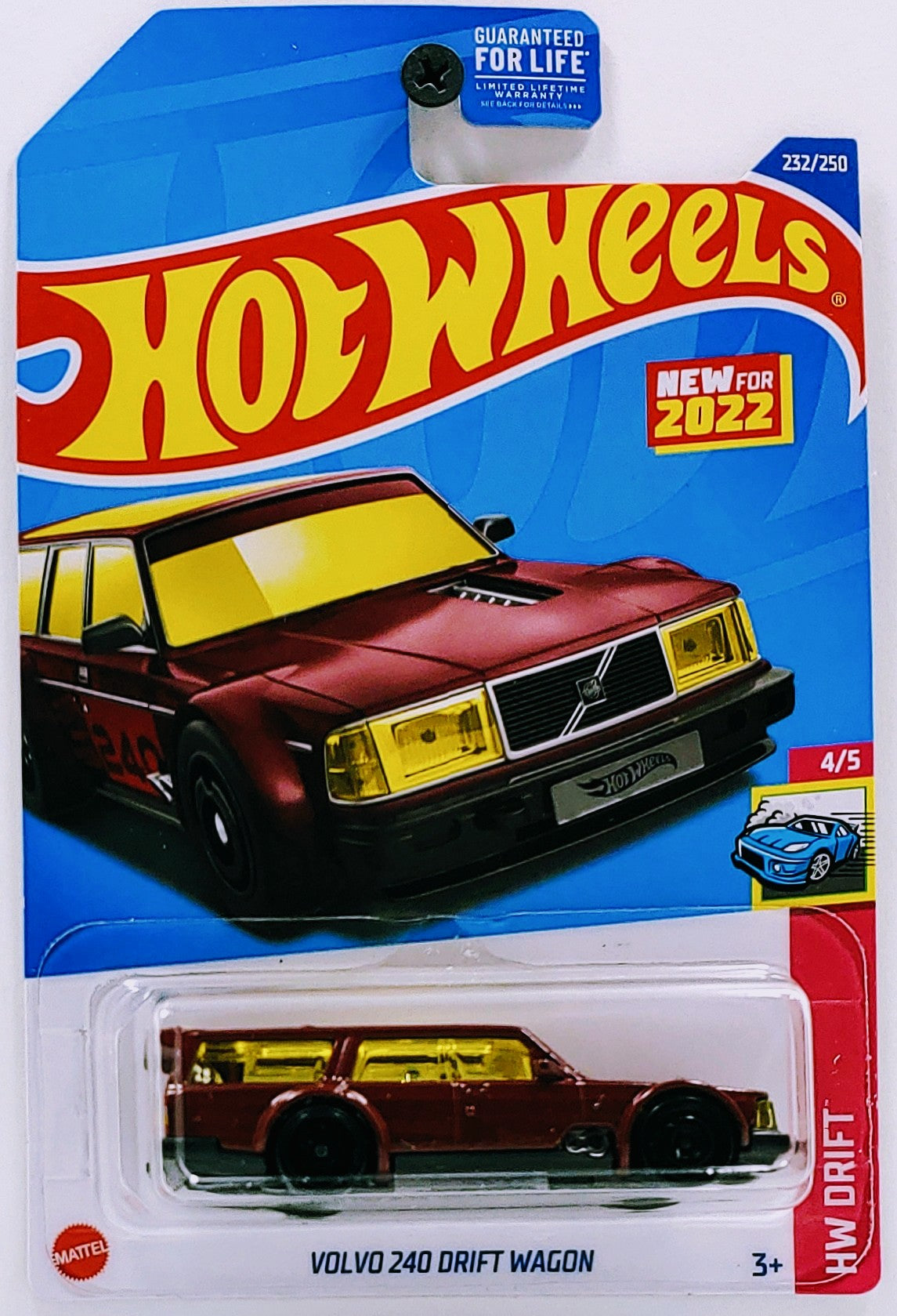Hot Wheels 2022 - Collector # 232/250 - HW Drift 4/5 - New Model - Volvo 240 Drift Wagon - Dark Red - USA Card - MPN HCT20