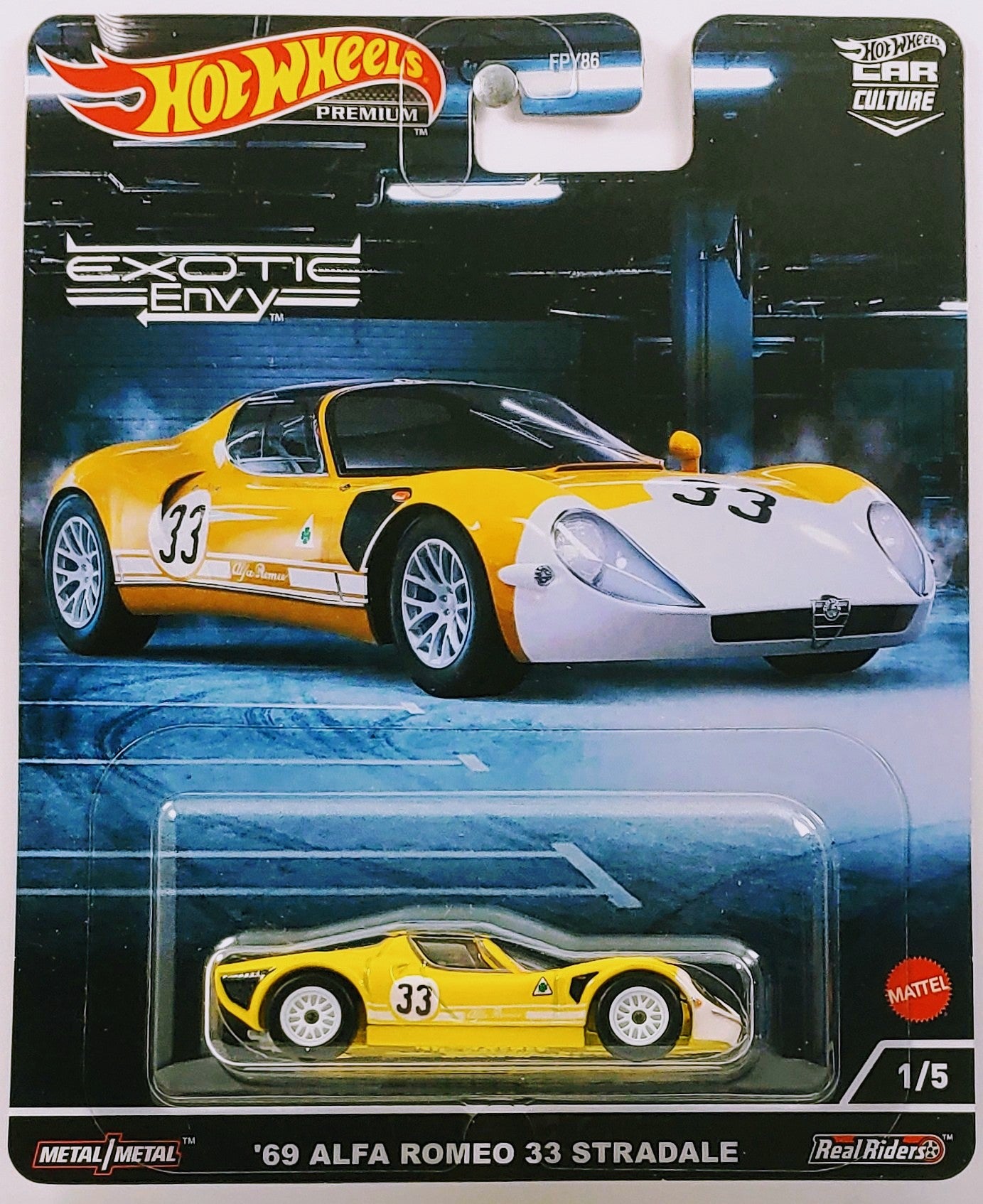 Hot Wheels 2022 - Premium / Car Culture / Exotic Envy 1/5 - '69 Alfa Romeo 33 Stradale - Yellow / #33 - Metal/Metal & Real Riders - MPN HCJ91