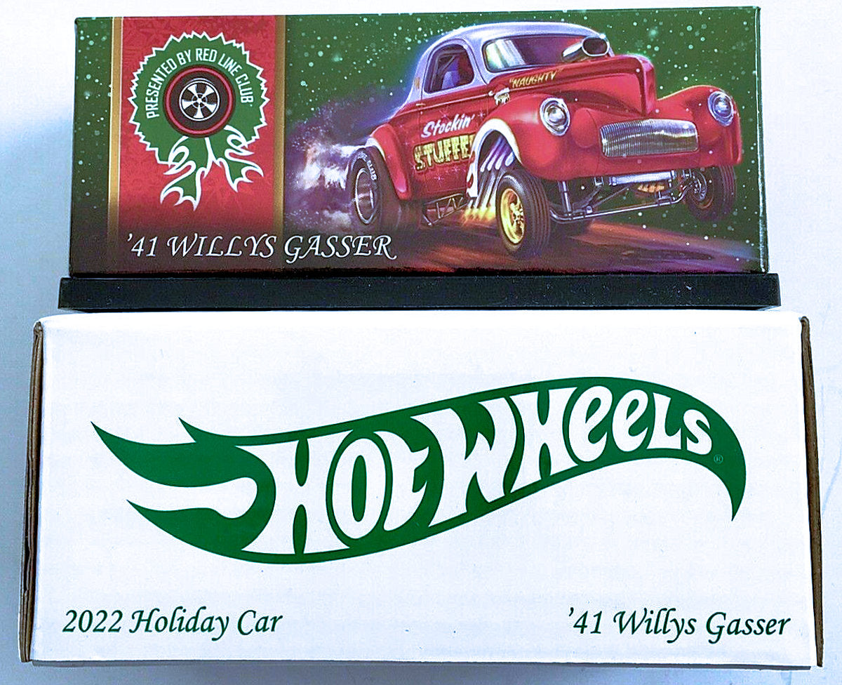 Hot Wheels 2022 - RLC Exclusive / Holiday Car / Stocking Stuffer - '41 Willys Gasser - Spectraflame Red - Metal/Metal & Real Riders - Acrylic Display Case - Limited to 30,000