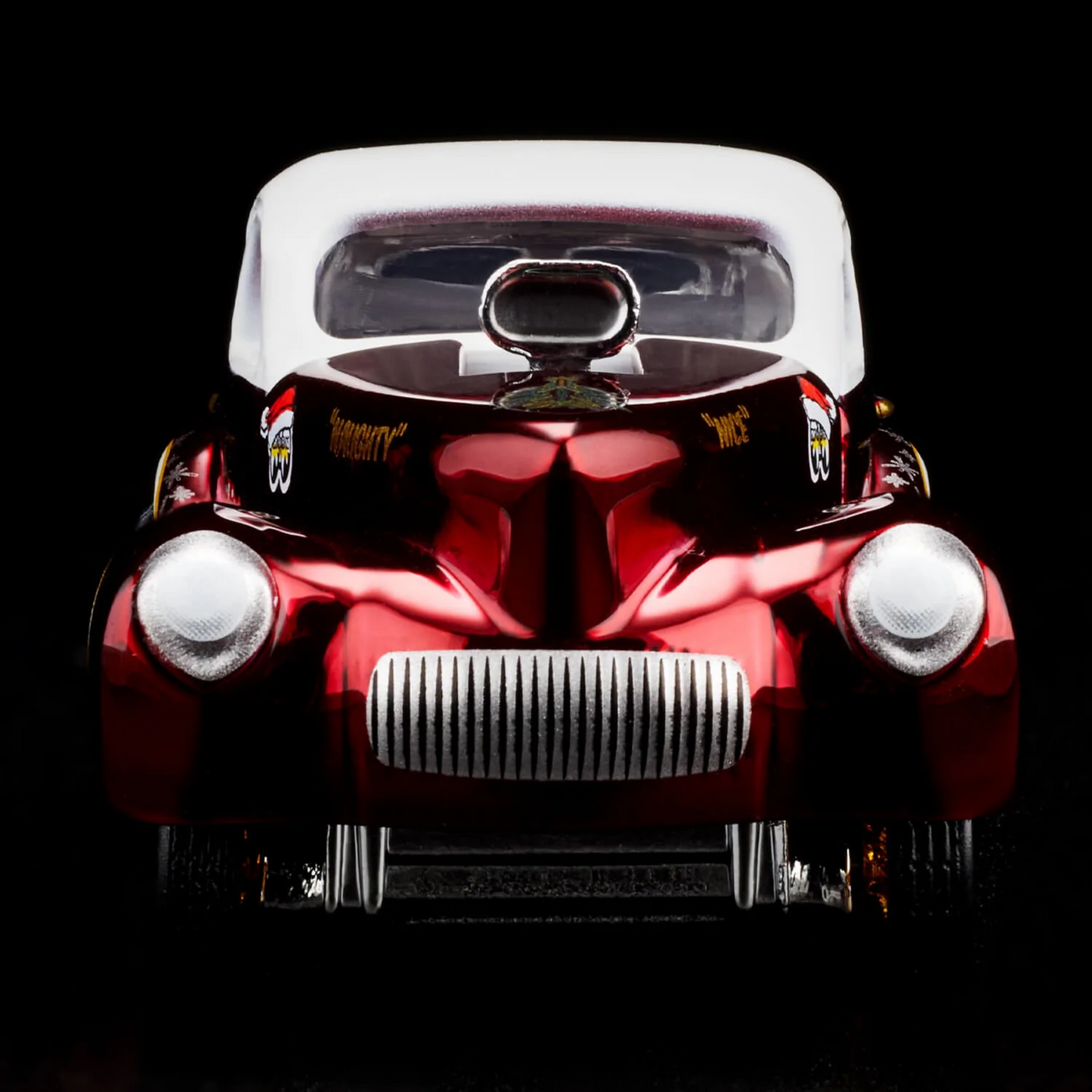 The RLC Exclusive ’41 Willys Gasser Holiday Car is spreading serious cheer faster than any sleigh with its chrome-plated supercharged engine. This fan favorite features a hot-rodding Spectraflame Oxblood red paint job adorned with special holiday décor throughout. We even matched the white hard-top to the candy cane-colored seats.