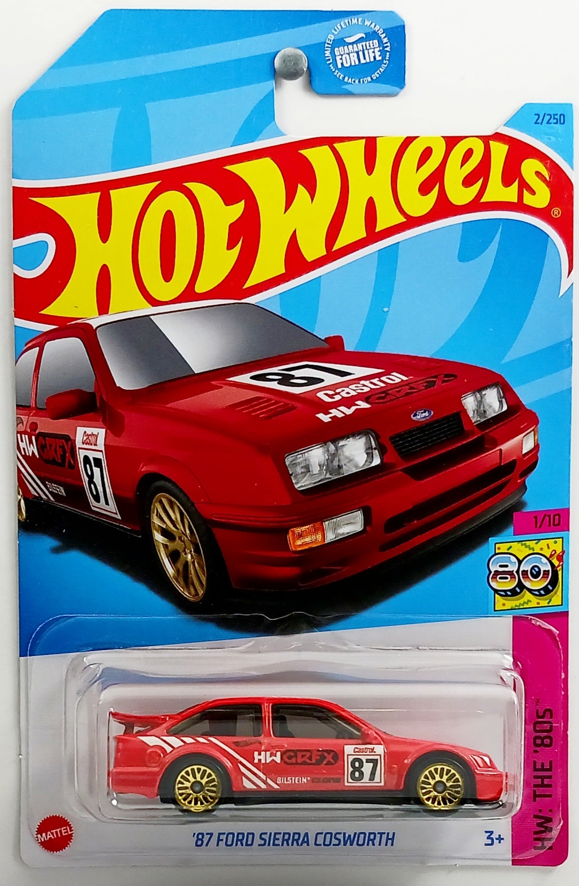 Hot Wheels 2023 - Collector # 002/250 - HW: The '80s - '87 Ford Sierra Cosworth - Red / #87 - USA Card - MPN HKG79