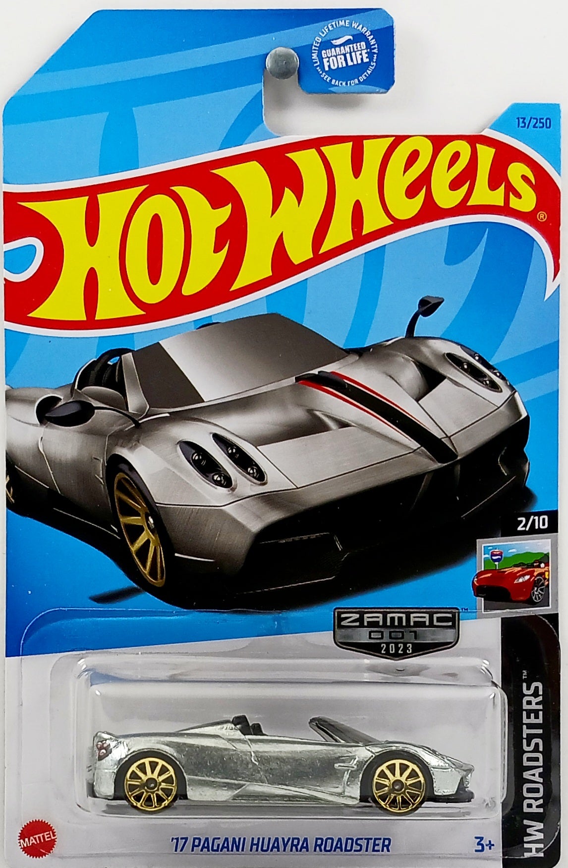 Hot Wheels 2023 - Collector # 013/250 - HW Roadsters 2/10 - ZAMAC 001 - '17 Pagani Huayra Roadster - ZAMAC - Walmart Exclusive - USA Card - MPN HKL23