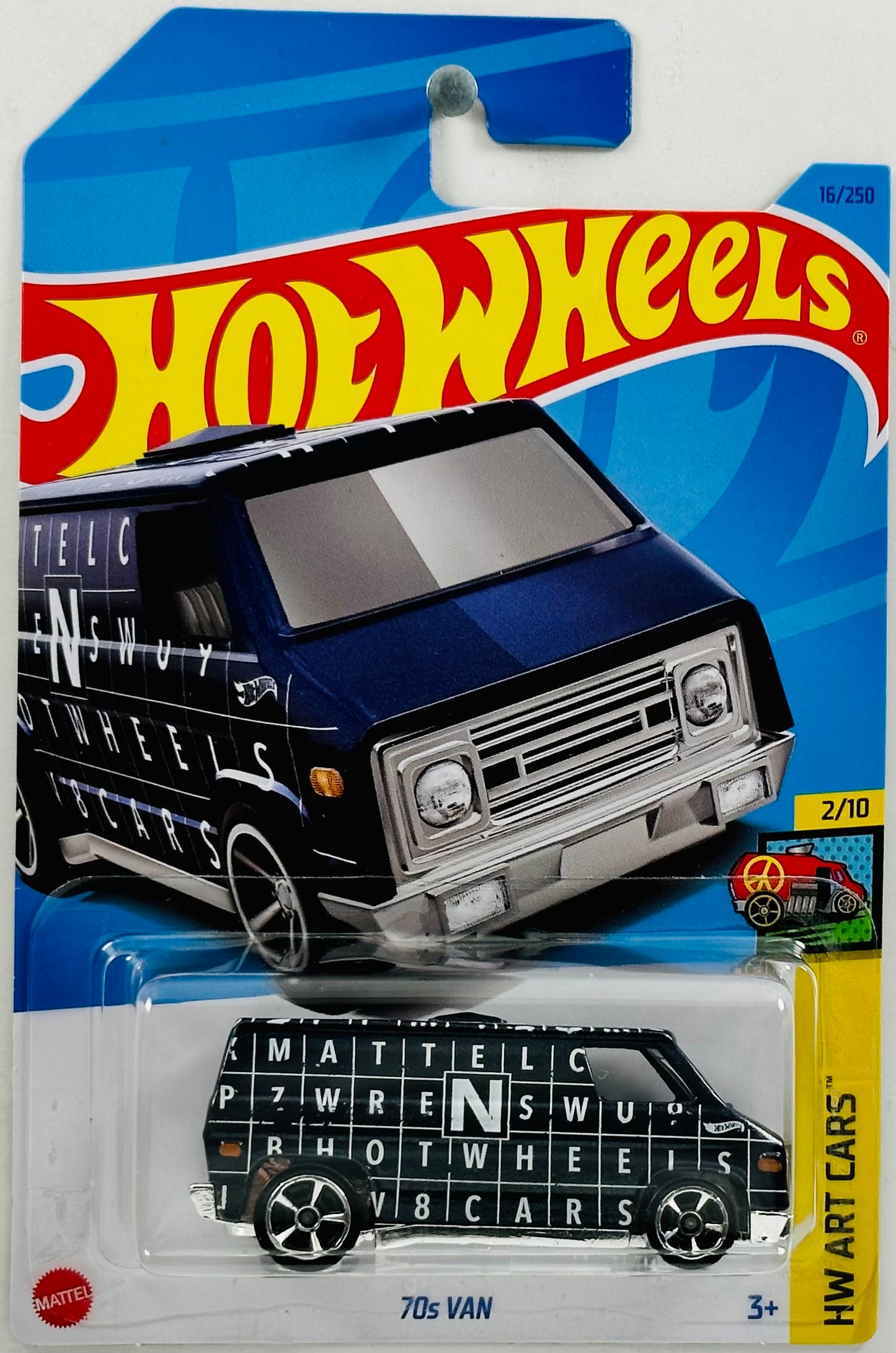 Hot Wheels 2023 - Collector # 016/250 - HW Art Cars 2/10 - 70s Van - Dark Blue / Crossword Graphics - IC