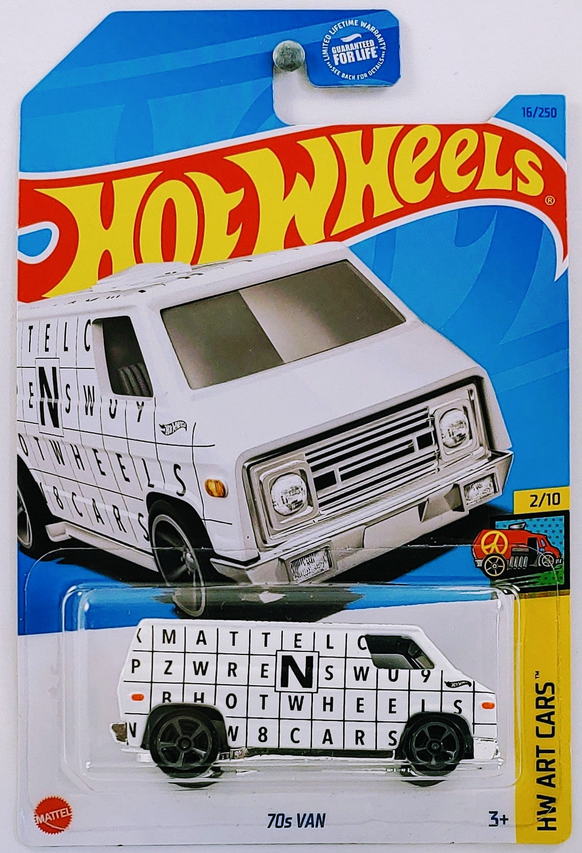 Hot Wheels 2023 - Collector # 016/250 - HW Art Cars 2/10 - 70s Van - White / Crossword Graphics - USA