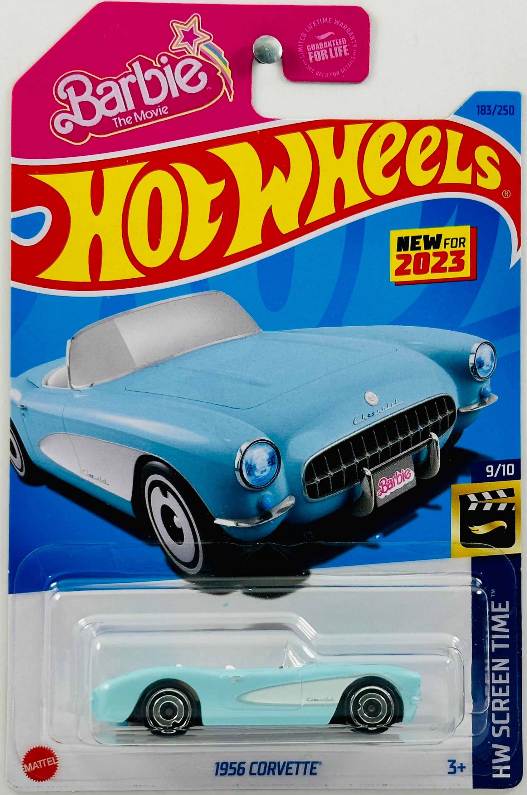 Hot Wheels 2023 - Collector # 183/250 - HW Screen Time 09/10 - New Models - 1956 Corvette - Baby Blue - AeroDisc Wheels - Barbie The Movie - USA Card - MPN HKK87