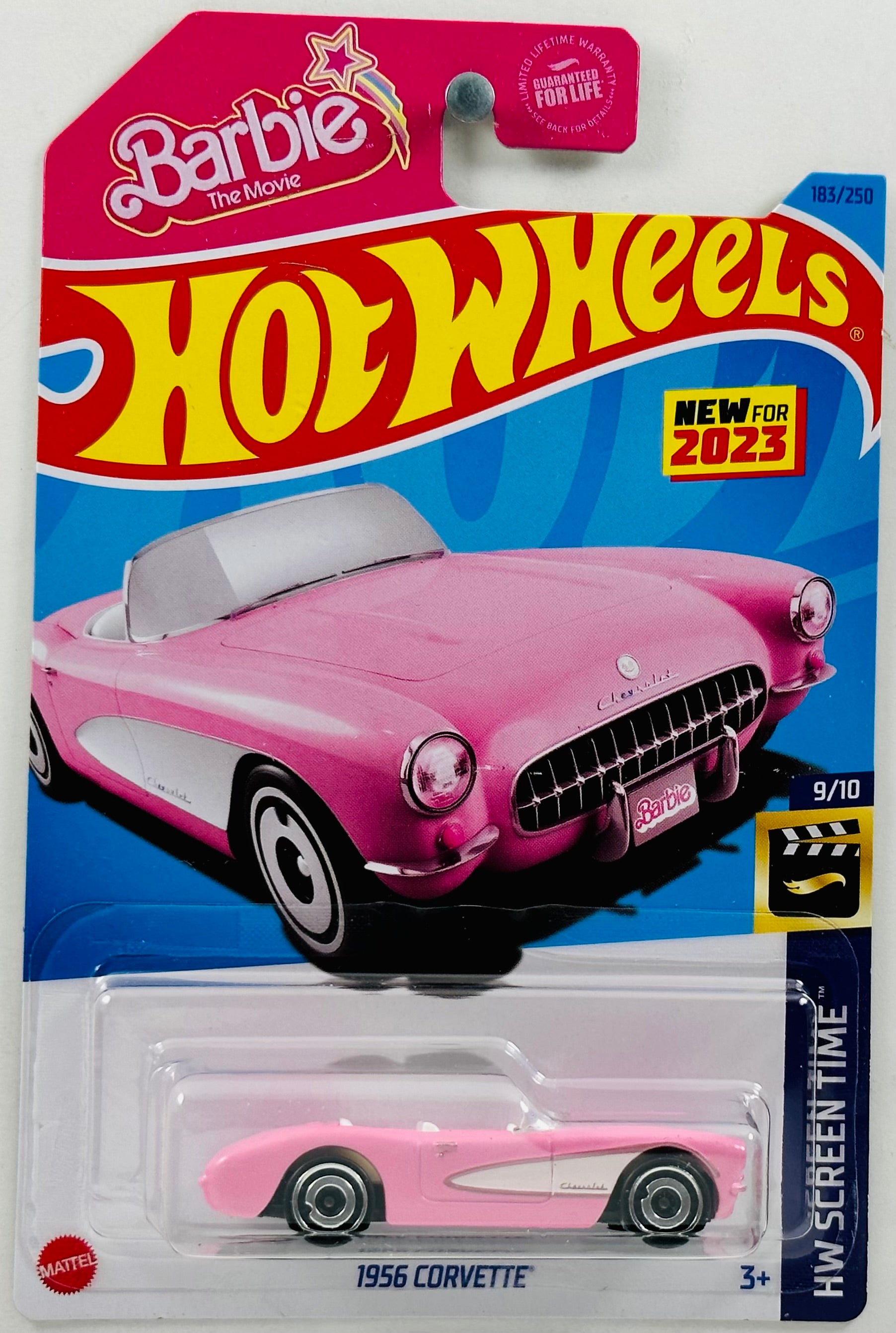 Hot Wheels 2023 - Collector # 183/250 - HW Screen Time 09/10 - New Models - 1956 Corvette - Barbie Pink - AeroDisc Wheels - Barbie The Movie - USA Card - MPN HKG52