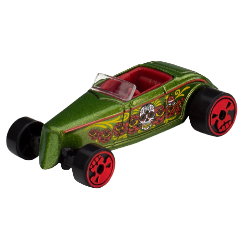 Hot Wheels 2023 - Halloween Series 01/05 - '33 Ford Lo Boy - Metalflake Olive Green - Día de Los Muertos (Day of the Dead) - Grocery Store Exclusive