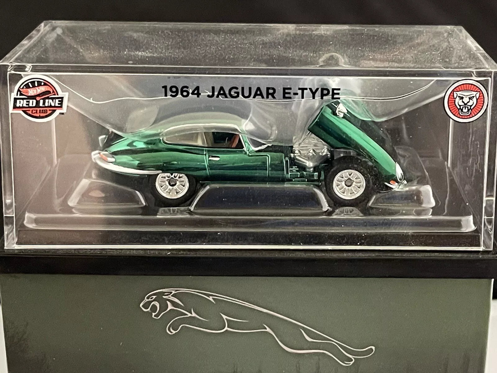 Mattel description - The 1964 Jaguar E-Type is a Hot Wheels casting debuting as an RLC exclusive in 2023. It features an opening cowl.