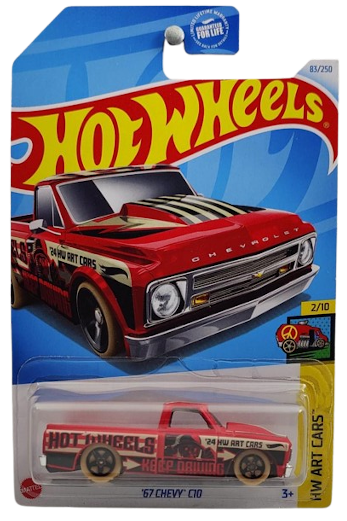 Hot Wheels 2024 - Collector # 083/250 - HW Art Cars 2/10 - '67 Chevy C10 - Red / "E" - USA Card
