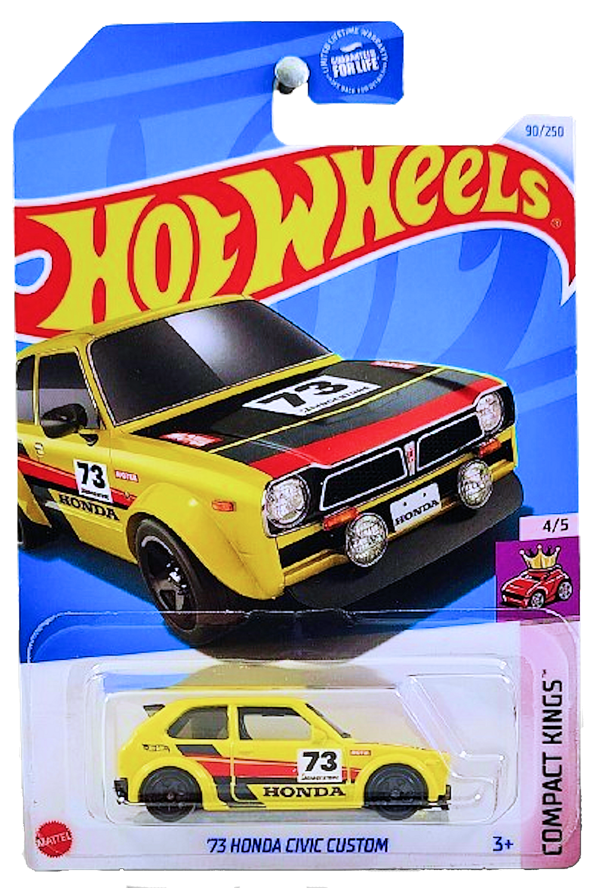Hot Wheels 2024 - Collector # 090/250 - Compact Kings 4/5 - '73 Honda Civic Custom - Yellow / #73 - USA Card - MPN HTC19