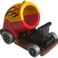 Wiki says: The Boom Car is a Hot Wheels original model designed by designer Tyler Charest. Tyler explains in the All Access blog on the Hot Wheels YouTube Channel that he wanted to make a downhill race car that put the "fun in function". This resulted in the Boom Car. According to Tyler it's unlike a "traditional Hot Wheels car", which is aggressive, a speed machine, sleek, low and fast-proportioned. It is the exact opposite of that idea: a motorless model, a real down hill racer. Minifigures can be inserted into the open cannon and flicked out by your fingers.
