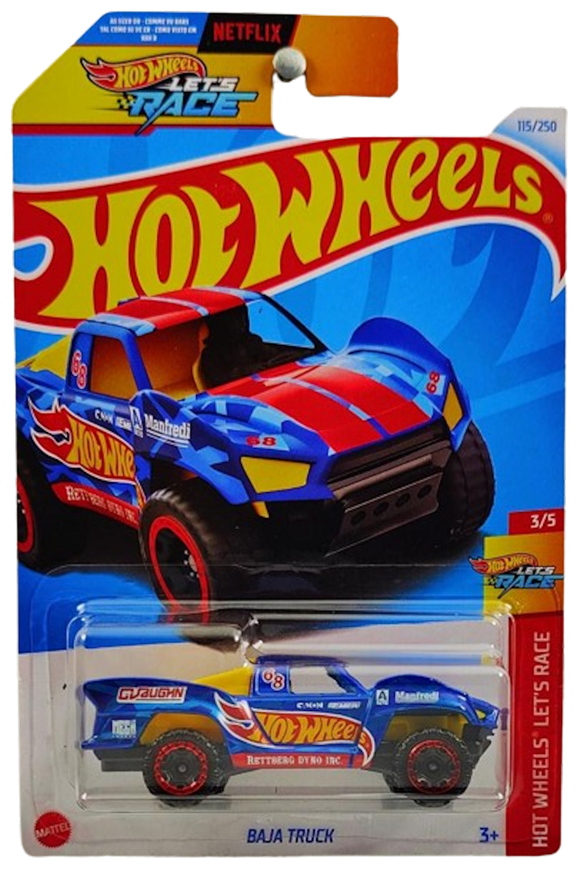 Hot Wheels 2024 - Collector # 115/250 - Hot Wheels Let's Race 03/05 - Baja Truck - Dark Blue - '68' - International 'Let's Race' Card - MPN HTC09