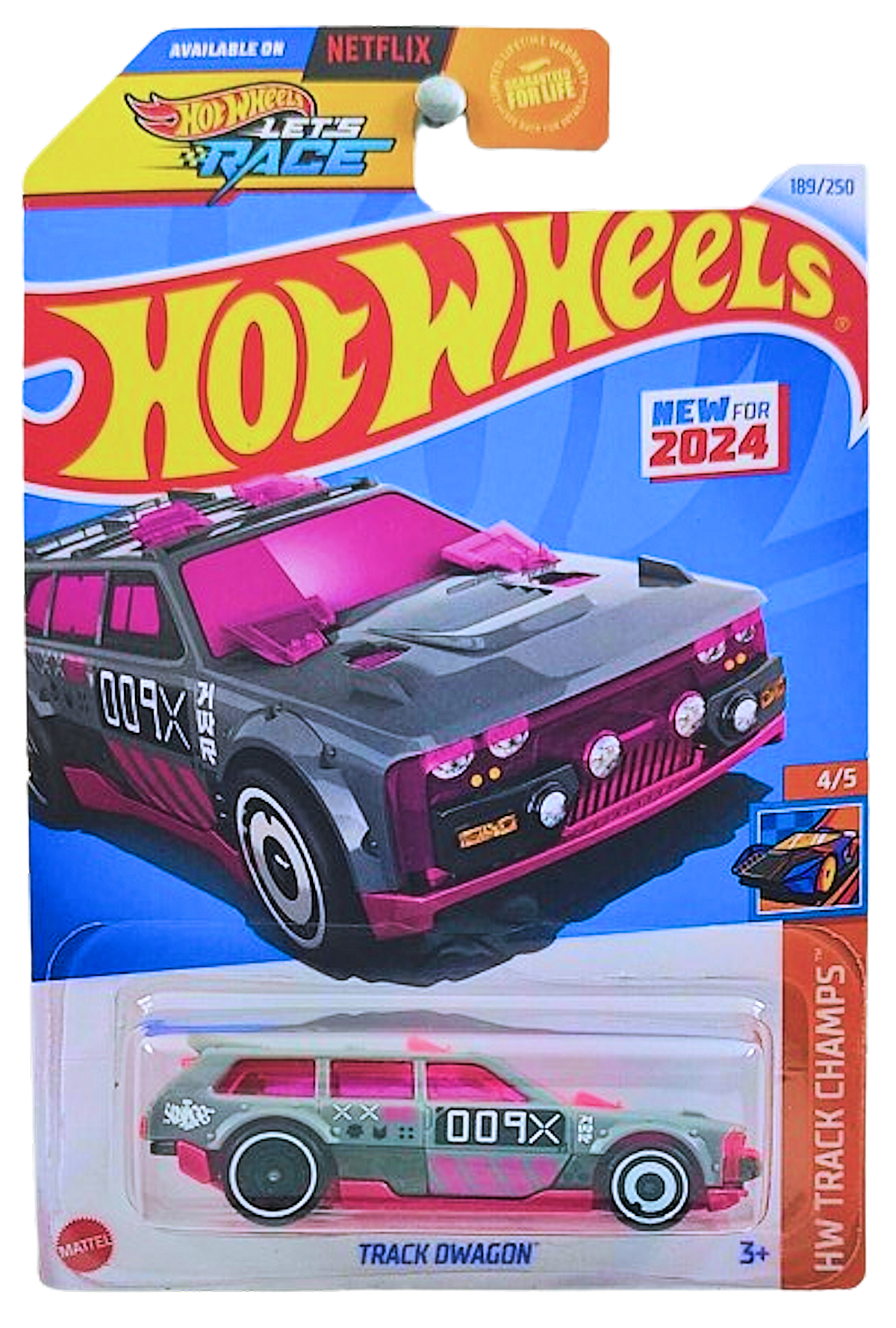 Hot Wheels 2024 - Collector # 189/250 - HW Track Champs 4/5 - New Models - Track Dwagon - Gray / #009X - Pink Windows - USA 'Let's Race Card