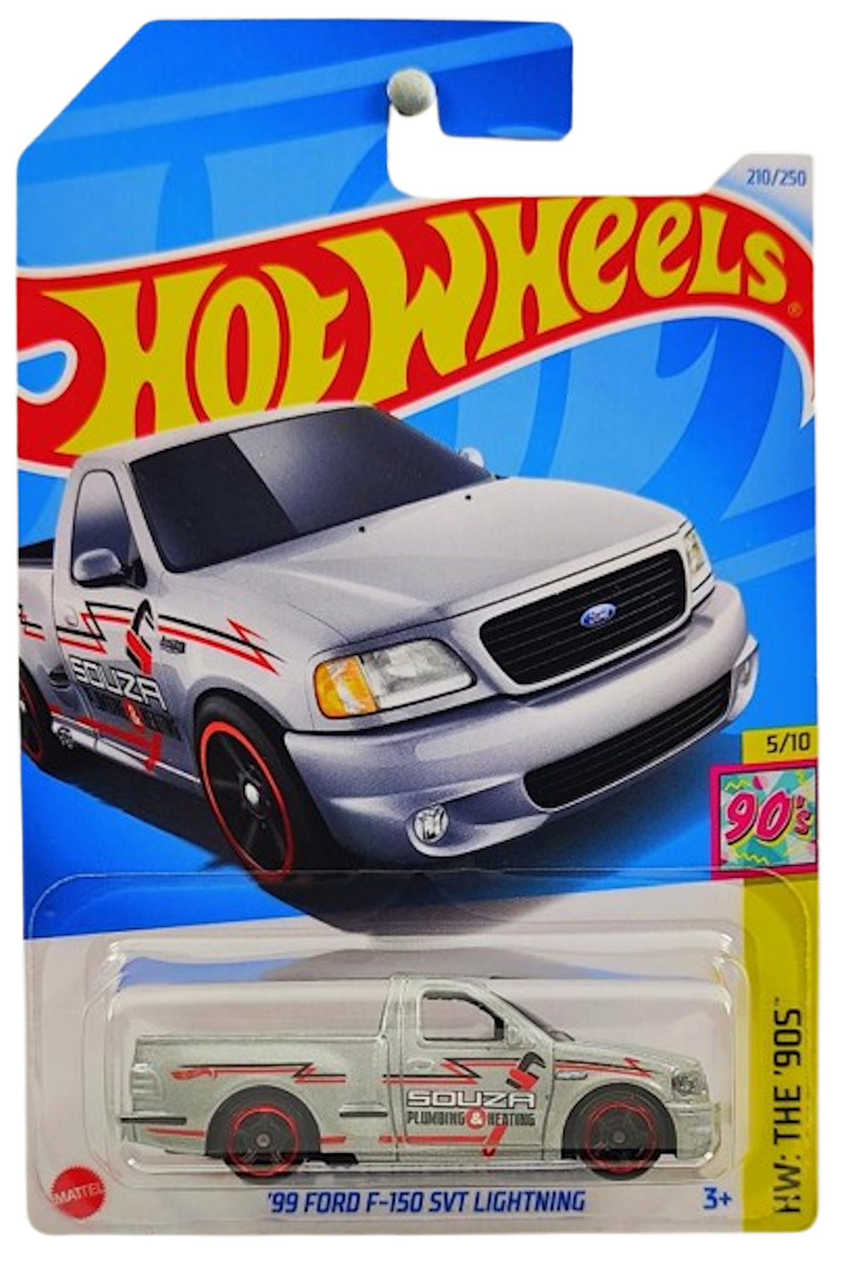 Hot Wheels 2024 - Collector # 210/250 - HW: The '90s 5/10 - '99 Ford F-150 SVT Lightning - Silver - International Card - MPN HTB07
