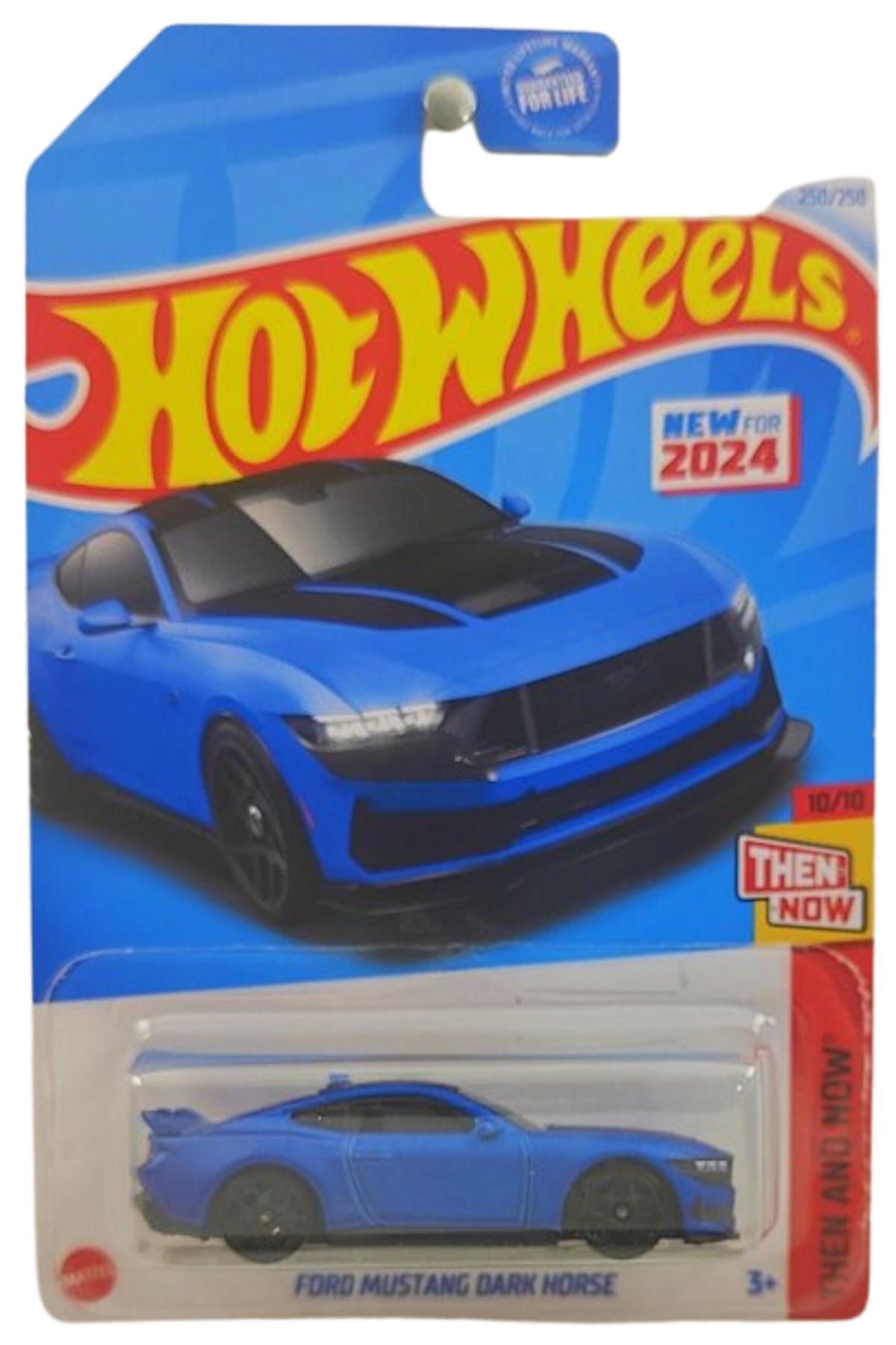 Hot Wheels 2024 - Collector # 250/250 - Then and Now 10/10 - New Models - Ford Mustang Dark Horse - Satin Blue - USA Card