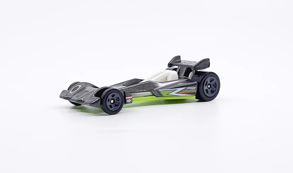 This casting depicts a gasser version of a 1962 Chevrolet Corvette. This casting is based on the '62 Corvette casting originally designed by Larry Wood in 2009, and has "Schmid's Chevrolet" on the side, a nod to HW track & play sets designer Paul Schmid, who loves Corvettes.