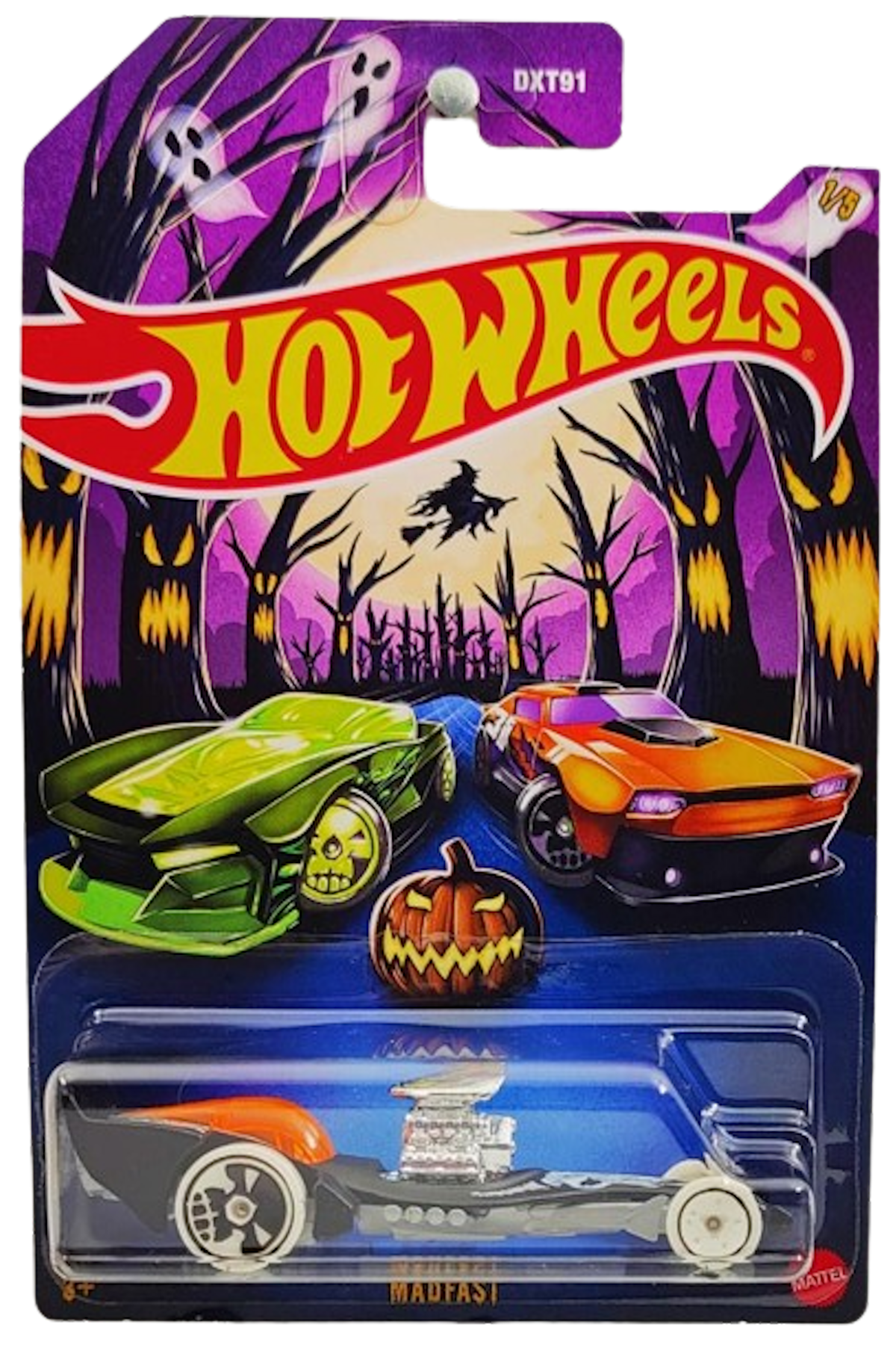 Hot Wheels 2024 - Happy Halloween 1/5 - Madfast - Matte Black / Skull - Black Skull Wheels on White Tires - Grocery Stores Exclusive - MPN HVX10
