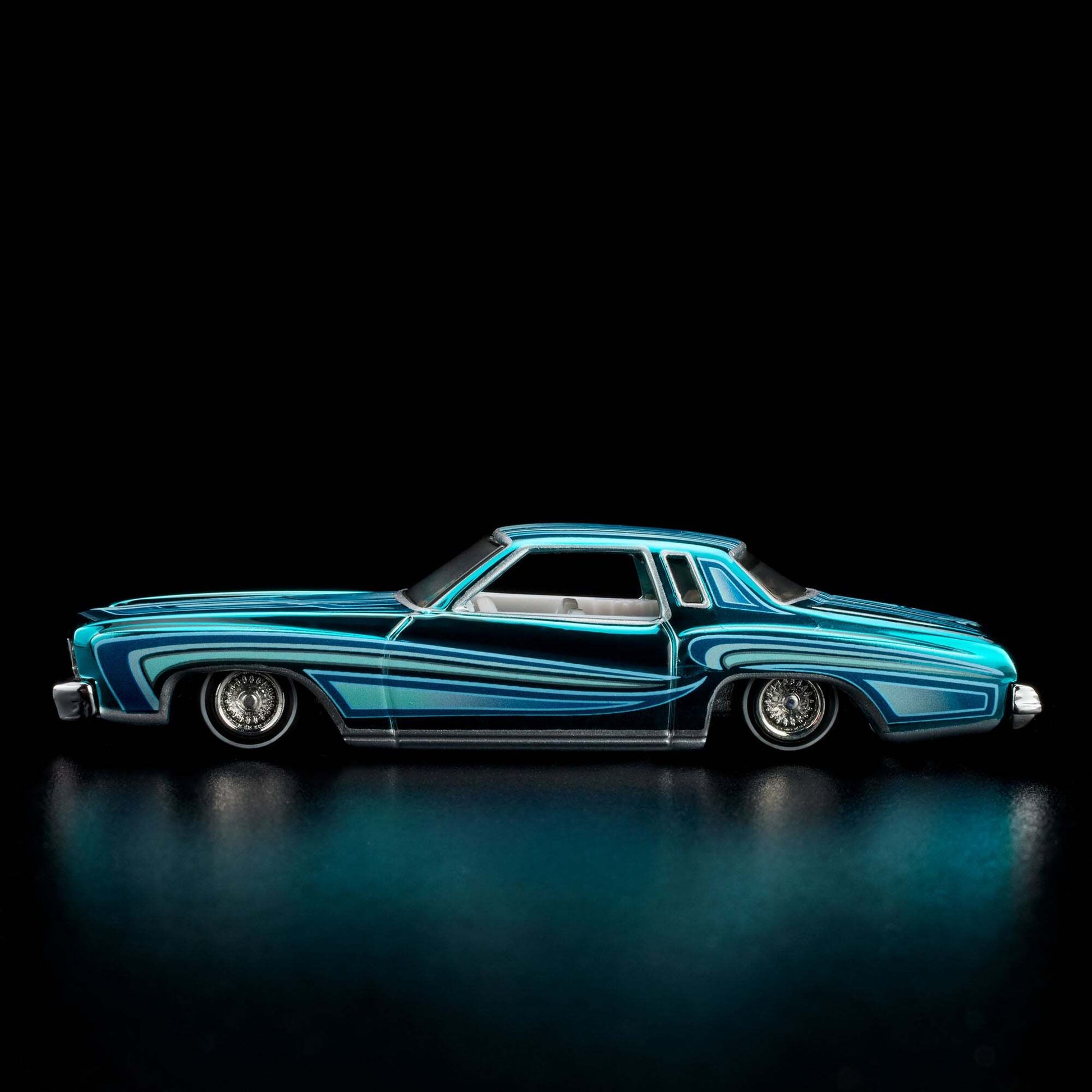 Hot Wheels 2024 - HWC/RLC Exclusive - 1975 Chevrolet Monte Carlo (Lowrider) - Spectraflame Teal - Metal/Metal - Real Riders - Adjustable/Posable Suspension - Acrylic Display Case