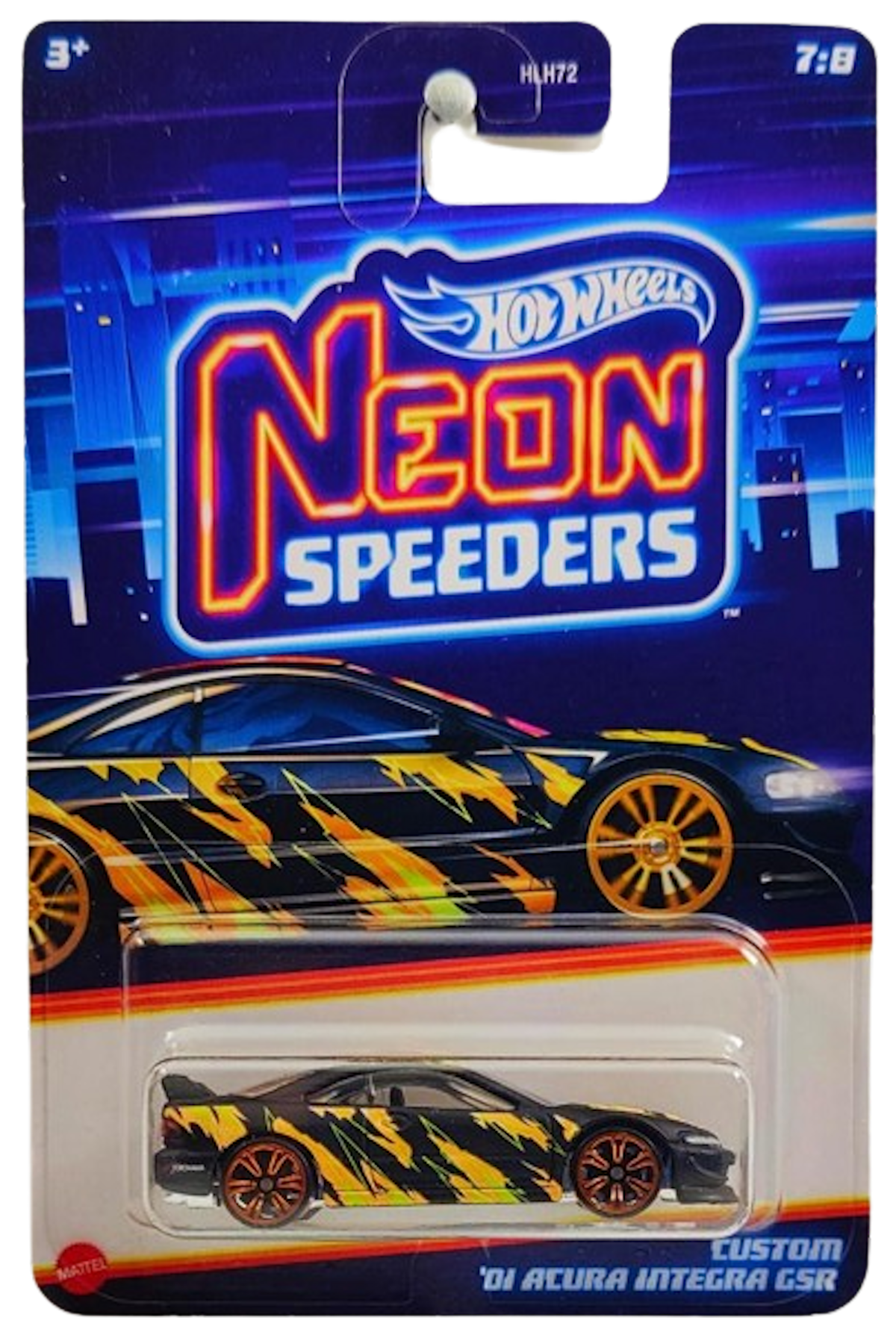 Hot Wheels 2024 - Mix 1 / Neon Speeders 7/8 - Custom '01 Acura Integra GSR - Matte Black / Orange & Yellow Graphics - Orange Chrome NS6 Wheels - Walmart Exclusive