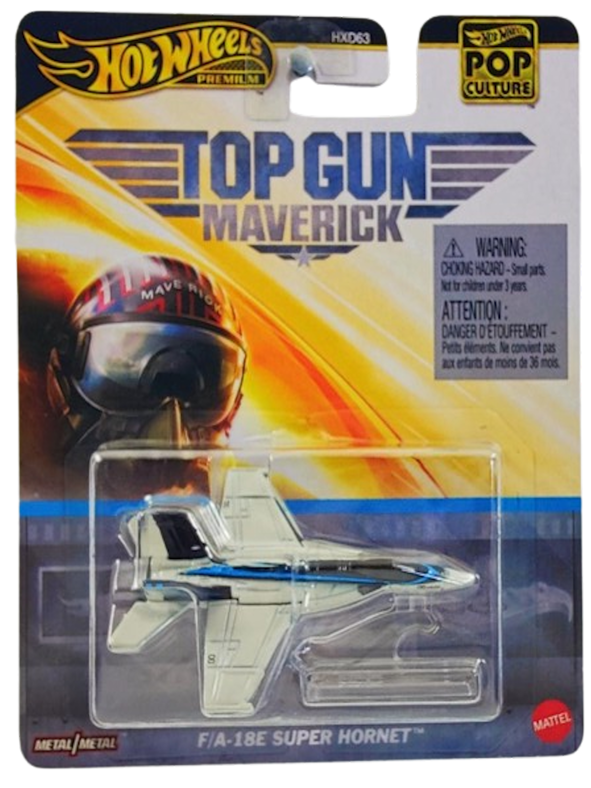 The base of the casting reads Boeing F/A-18E Super Hornet. The livery of this casting is based on the F/A-18E Super Hornet flown by Cpt. Pete "Maverick" Mitchell (played by Tom Cruise) in the film Top Gun: Maverick; the plane in the film used is BuNo 165667.